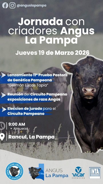 La Asociación Argentina de Angus, a través de Angus La Pampa, llevará adelante el jueves 19 de marzo de 2026 una jornada estratégica para la raza en la región pampeana. El encuentro comenzará a las 9:00 hs en la localidad pampeana de Rancul.