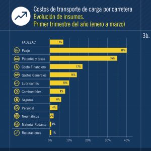 El informe señala que “sumando los índices de enero (3.19 %) y febrero (1.30 %), con fuertes subas en combustibles y peajes, esto implica una suba del 7% en el primer trimestre del año, que impacta directamente en el bolsillo del transportista, con una alta responsabilidad de la carga impositiva que pesa sobre el sector”.