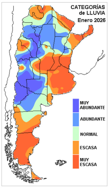 Las lluvias registradas en enero, comparadas con los valores estadísticos (1973-2025), presentan un patrón de anomalías que define la complejidad que actualmente padecen los cultivos de la franja central del país.