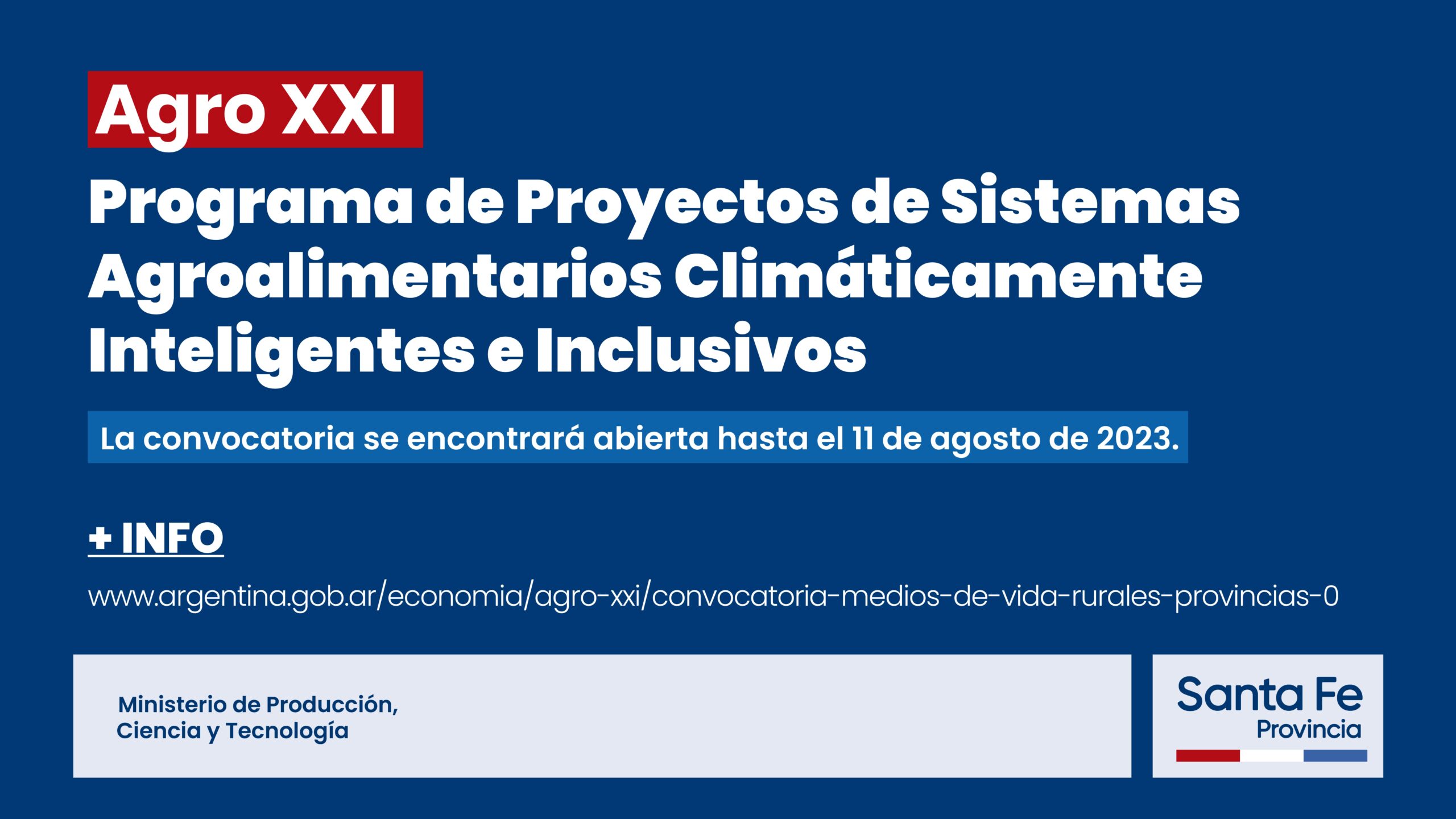 | El Ministerio de Producción, Ciencia y Tecnología, a través de la secretaría de Desarrollo Territorial y Arraigo, impulsa el Programa Nacional de Proyectos de Sistemas Agroalimentarios Climáticamente Inteligentes e Inclusivos (Agro XXI), que prevé la entrega de aportes para emprendimientos vinculados a la agricultura familiar en todo el territorio provincial.