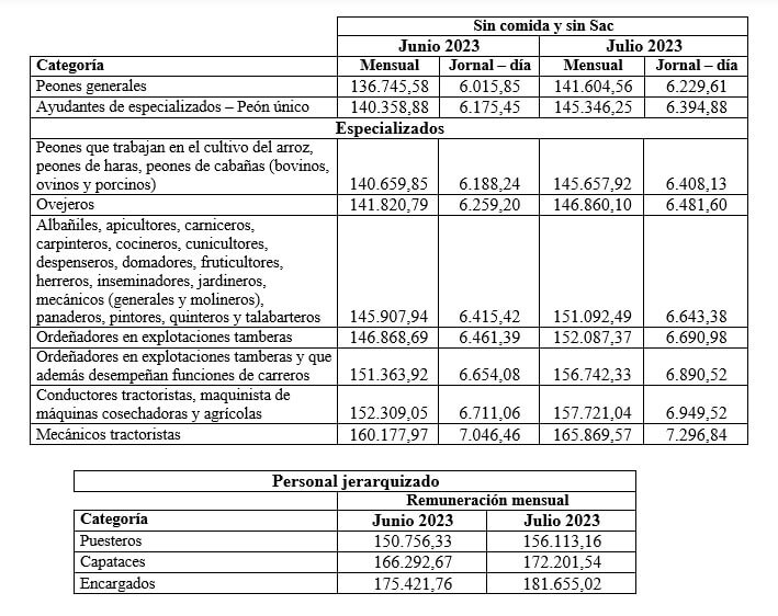 Los trabajadores rurales cobrarán sus salarios de junio y julio con aumento, según la Resolución 122/2023 que publicó en el Boletín Oficial la Comisión Nacional de Trabajo Agrario (CNTA).